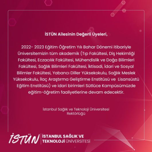 07 Mart 2022 Tarih ve 31771 Sayılı Resmi Gazetede İSTÜN Öğretim Üyesi İlanı