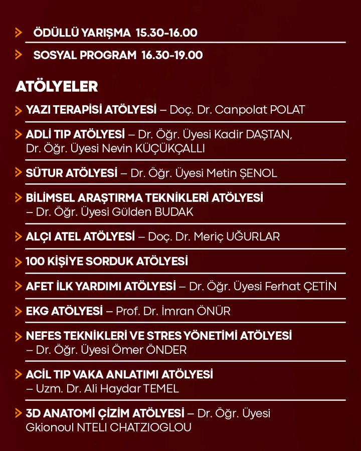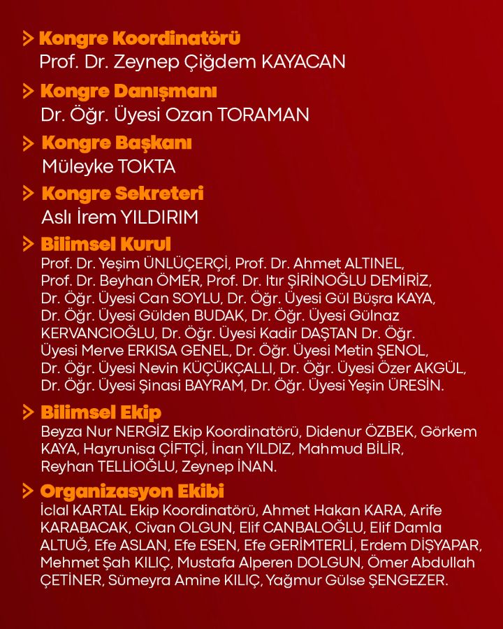 Değerli konuşmacılarımızın bulunduğu oturumlar ve atölyelerle ufkumuzu genişletecek kongremizde sizleri de aramızda görmek isteriz.