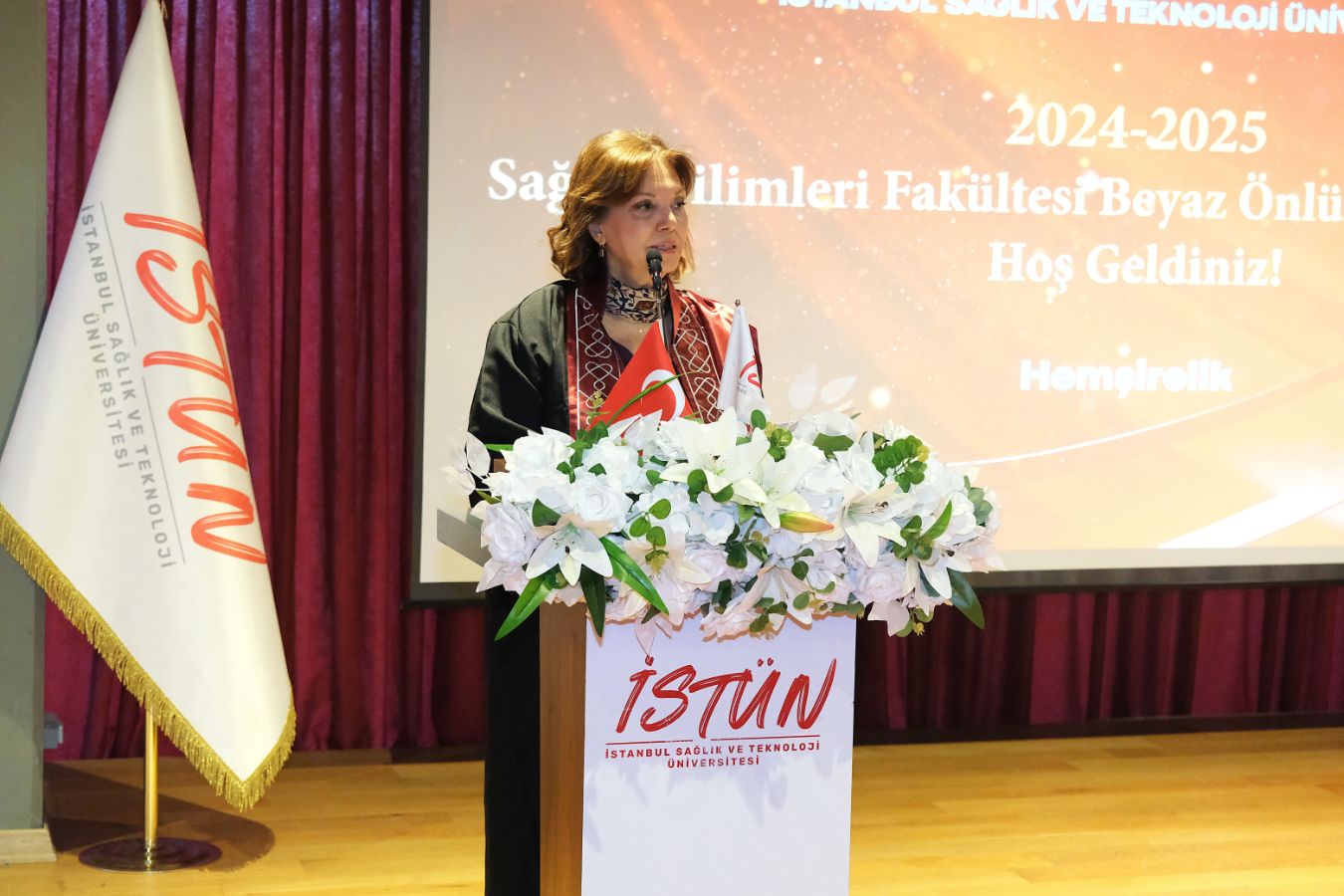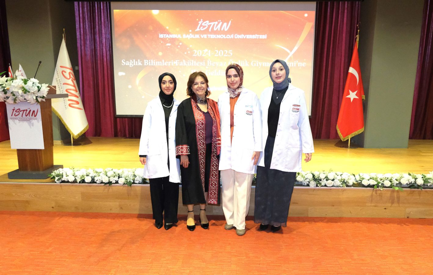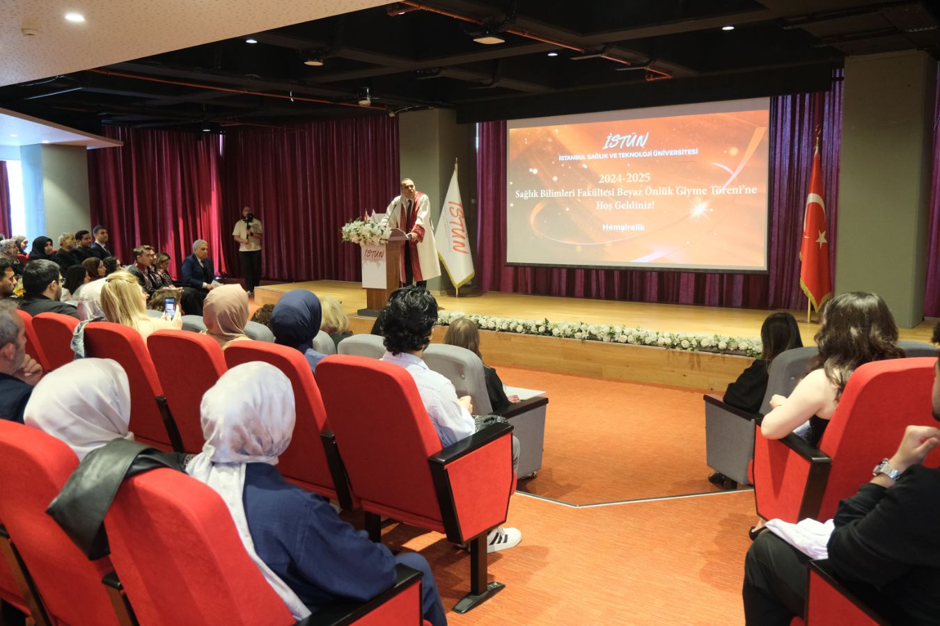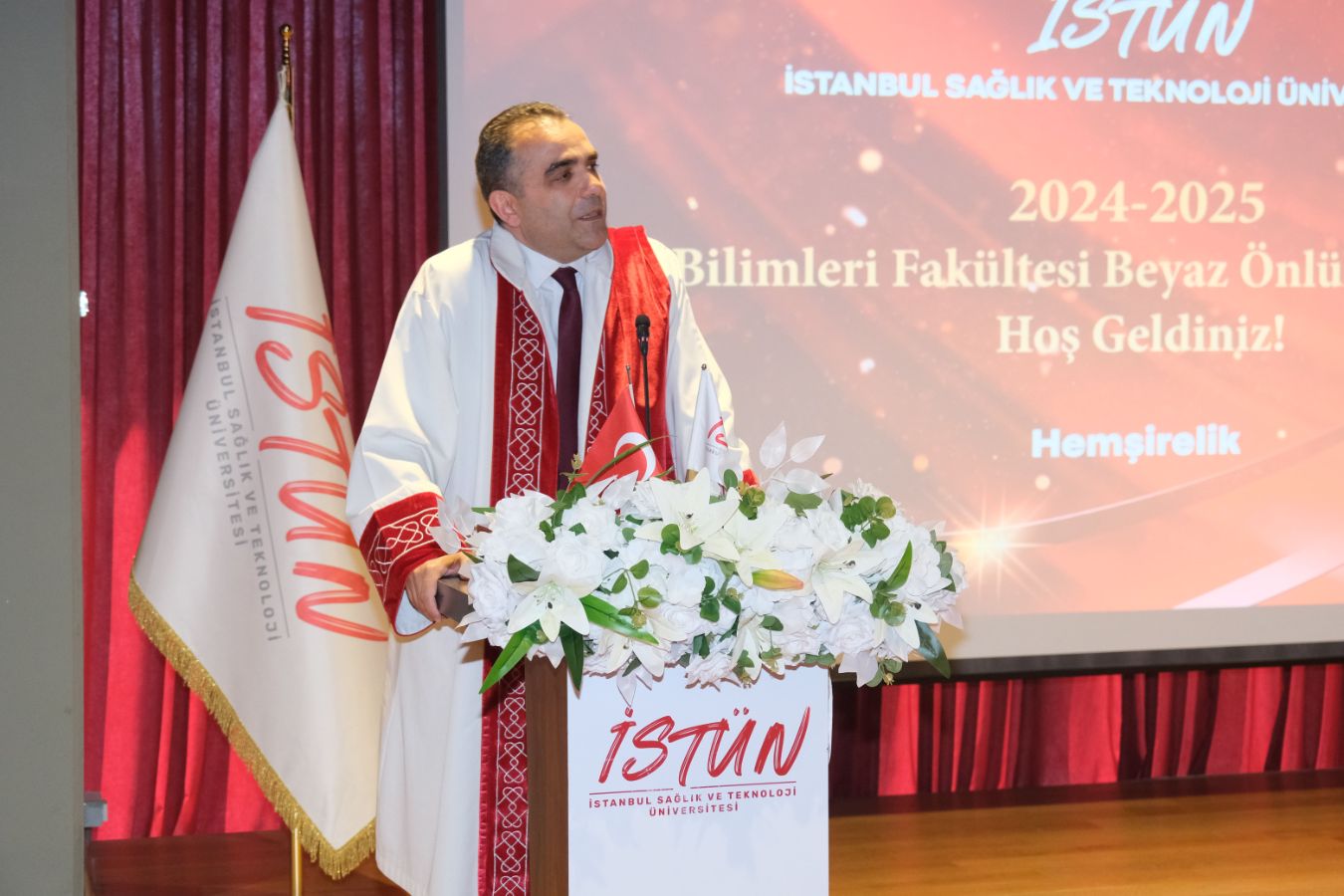 İstanbul Sağlık ve Teknoloji Üniversitesi (İSTÜN), 2024-2025 Akademik Yılı Sağlık Bilimleri Fakültesi Hemşirelik Bölümü Beyaz Önlük Giyme Töreni 13 Mayıs Salı günü gerçekleşti. Öğrencilerimizin ve ailelerinin yoğun katılımı ile düzenlenen tören Sütlüce Kampüsü Oditoryumunda yapıldı. Törenin sunuculuğunu ise Tıp Fakültesi öğretim üyelerimizden Dr. Öğr. Üyesi Ömer Önder Önder üstlendi.