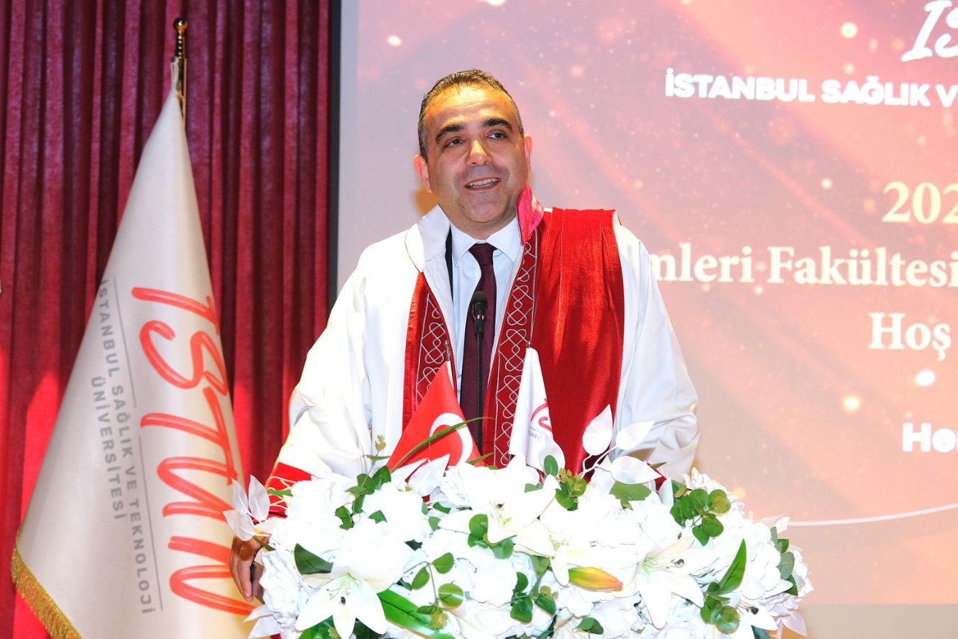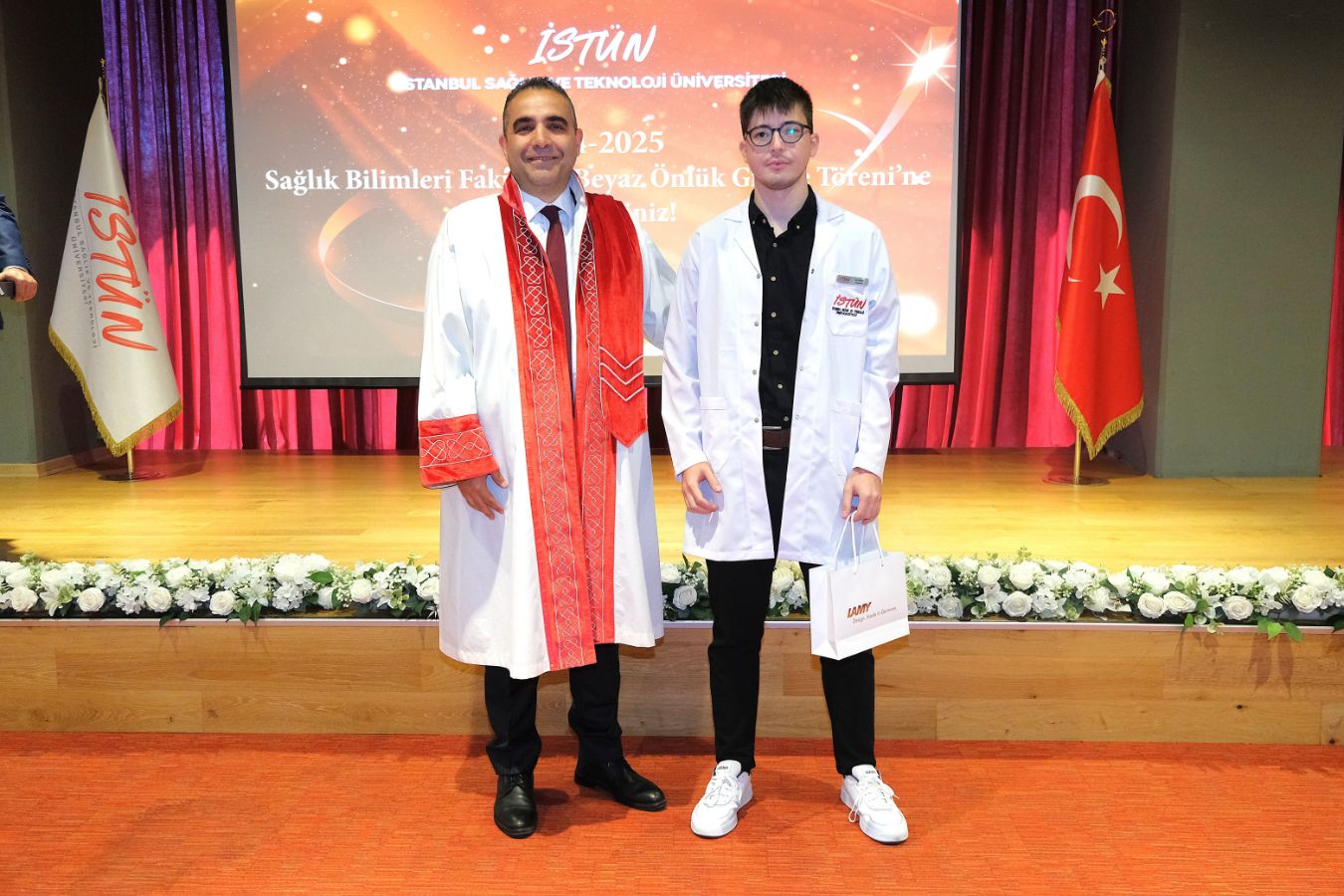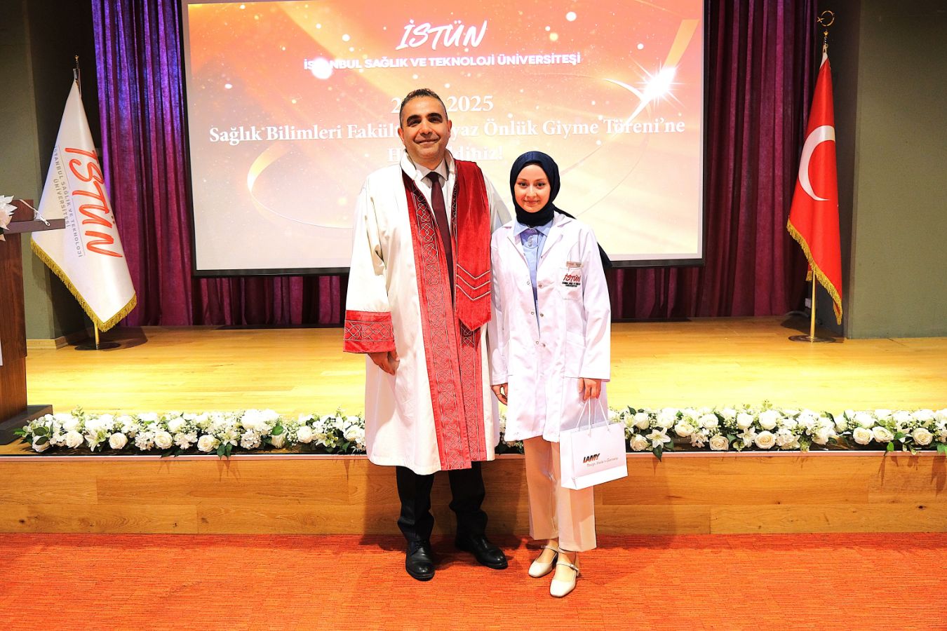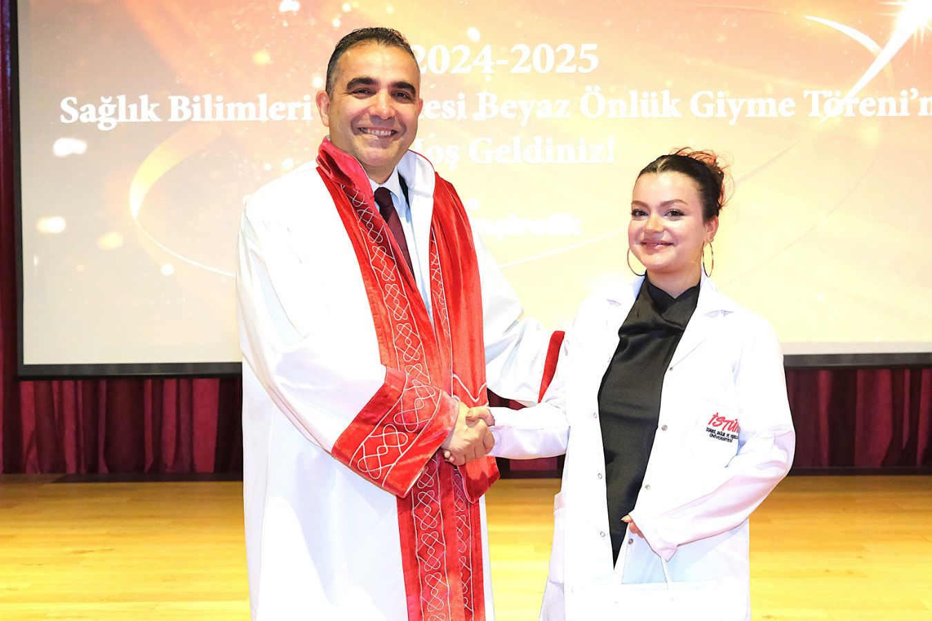 İstanbul Sağlık ve Teknoloji Üniversitesi (İSTÜN), 2024-2025 Akademik Yılı Sağlık Bilimleri Fakültesi Hemşirelik Bölümü Beyaz Önlük Giyme Töreni 13 Mayıs Salı günü gerçekleşti. Öğrencilerimizin ve ailelerinin yoğun katılımı ile düzenlenen tören Sütlüce Kampüsü Oditoryumunda yapıldı. Törenin sunuculuğunu ise Tıp Fakültesi öğretim üyelerimizden Dr. Öğr. Üyesi Ömer Önder Önder üstlendi.