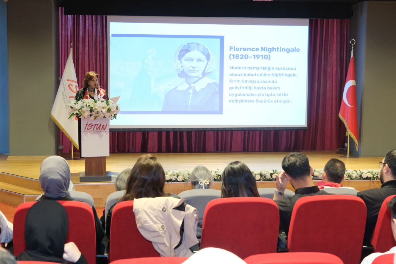 Florence Nightingale ile başlayan ve modern hemşirelik temellerine değinen Prof. Dr. Genç; sağlık hizmetlerinde hijyenin hayati önemini vurguladı. Türkiye’nin ilk profesyonel hemşiresi Safiye Hüseyin Elbi’nin sağlık hizmetlerindeki öncü rolünü hatırlattı. Hemşireler Haftasını kutlayan Prof. Dr. Genç, tüm öğrencileri tebrik etti.